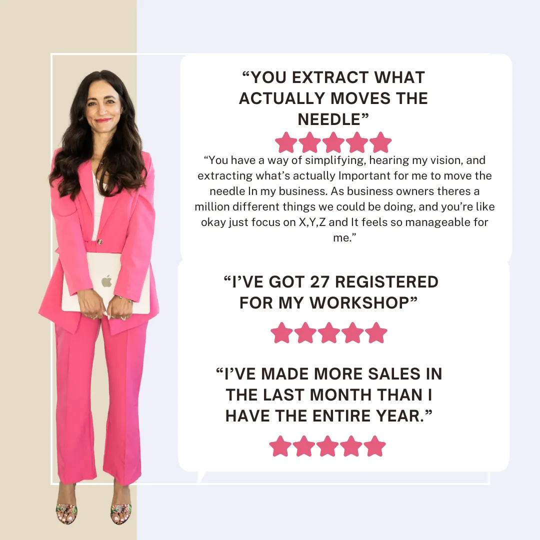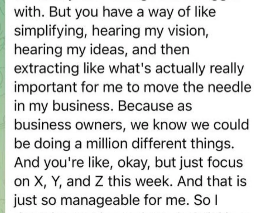 ✅ Sure you can have all the concrete steps lined up for you, but when you’re not working with me in real time, getting my eyes on your business, what you’re saying and NOT saying you’re not going to get the reflections that SHIFT your business from passion project to explosion